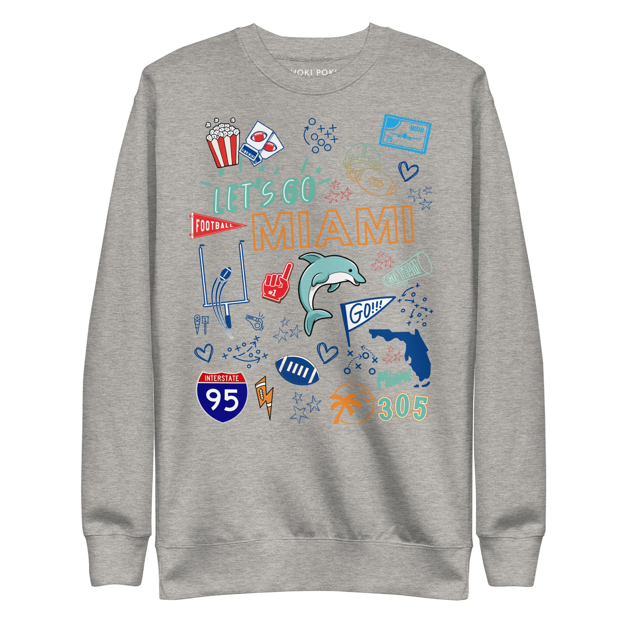Step into Miami vibes with this premium unisex sweatshirt! Designed with playful doodles — football, palm trees, sun, and tropical energy — it’s all about 305 pride and game day spirit.