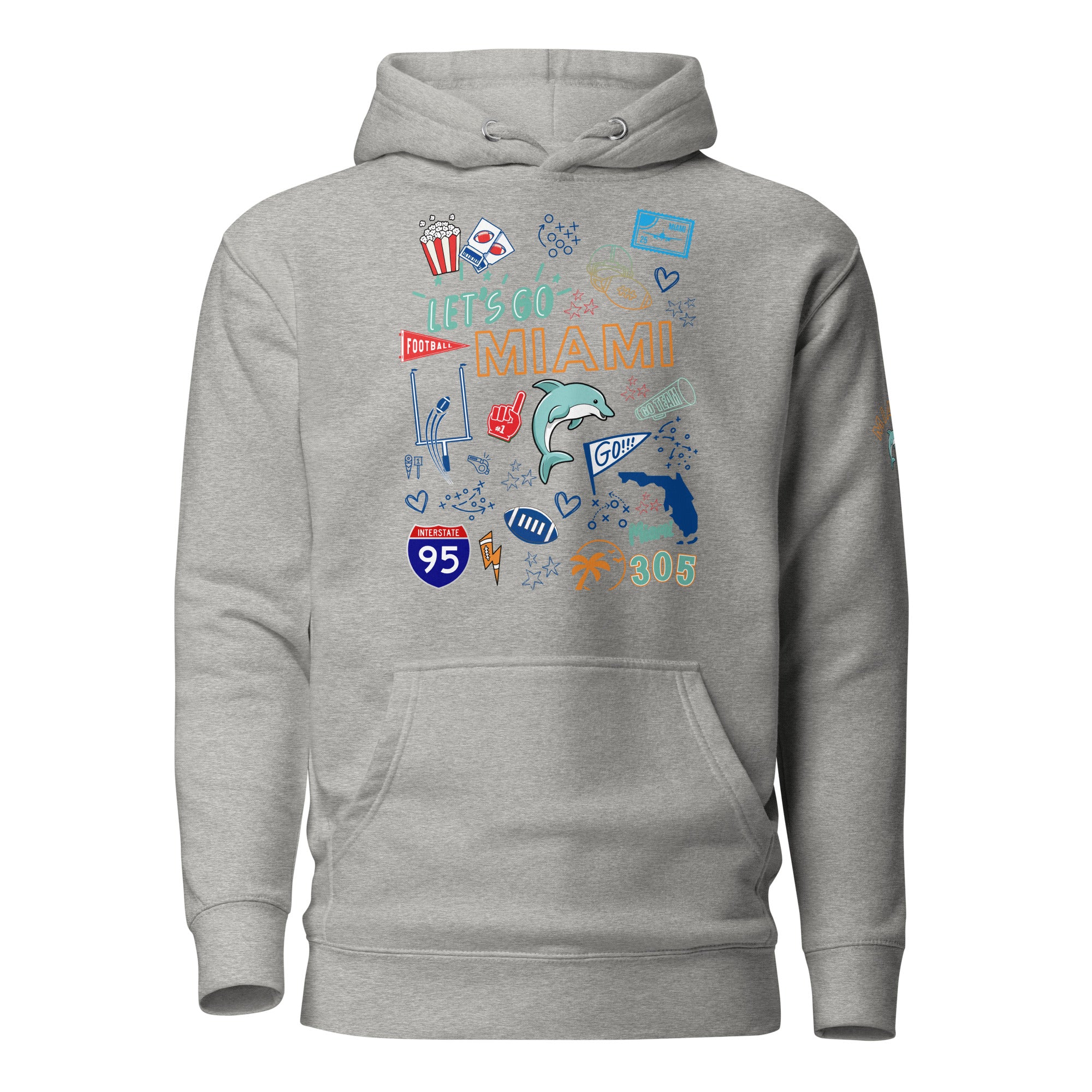 Step into the Miami spirit with this premium unisex hoodie! Designed with playful doodles — football, palm trees, sunshine, and tropical energy — it’s all about 305 pride and game day vibes.